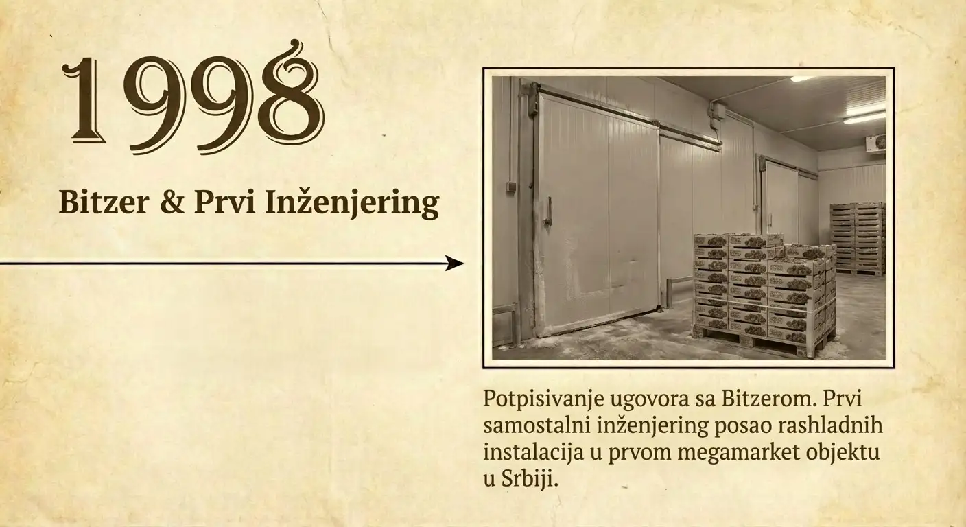 Potpisivanje ugovora sa Bitzerom. Prvi samostalni inženjering posao rashladnih instalacija u prvom megamarket objektu u Srbiji.