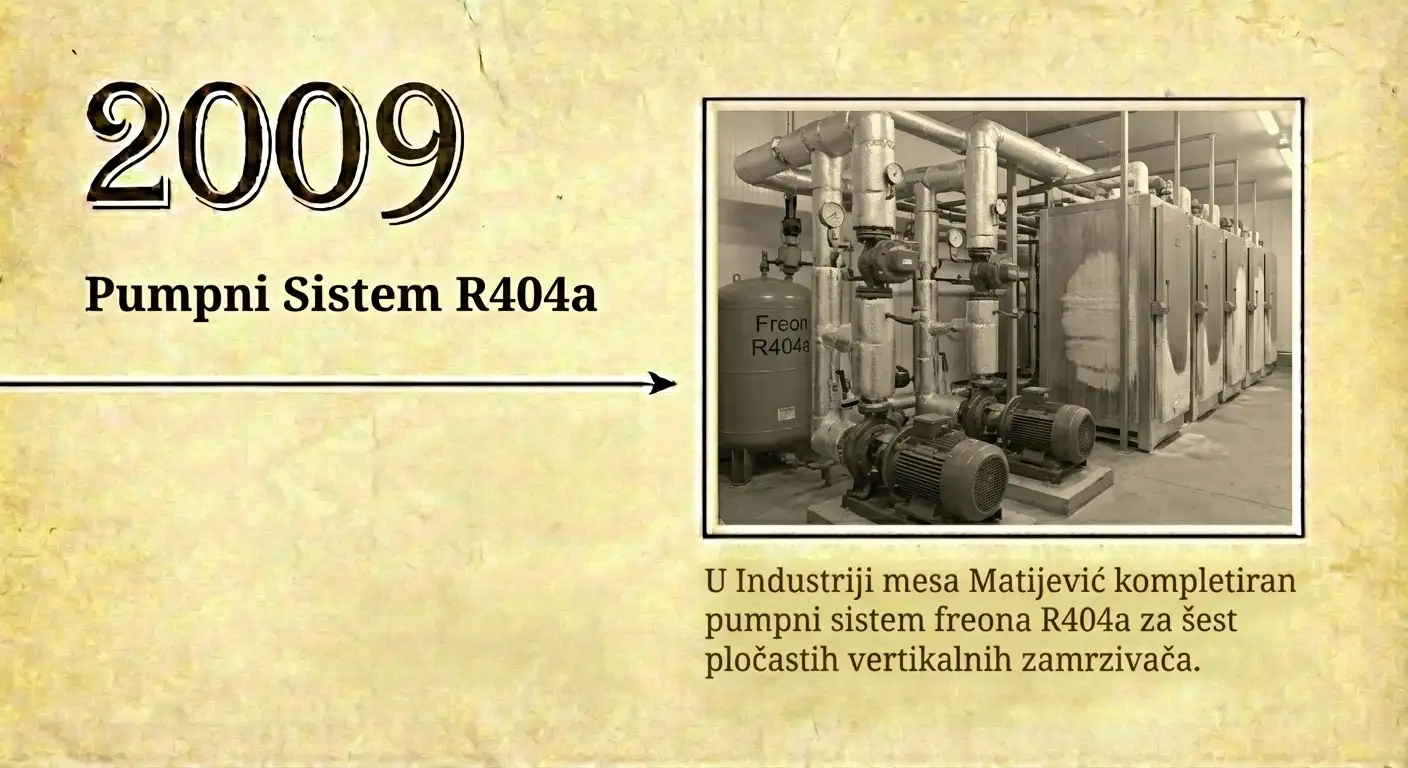 U Industriji mesa Matijević kompletiran pumpni sistem freona R404a za šest pločastih vertikalnih zamrzivača.